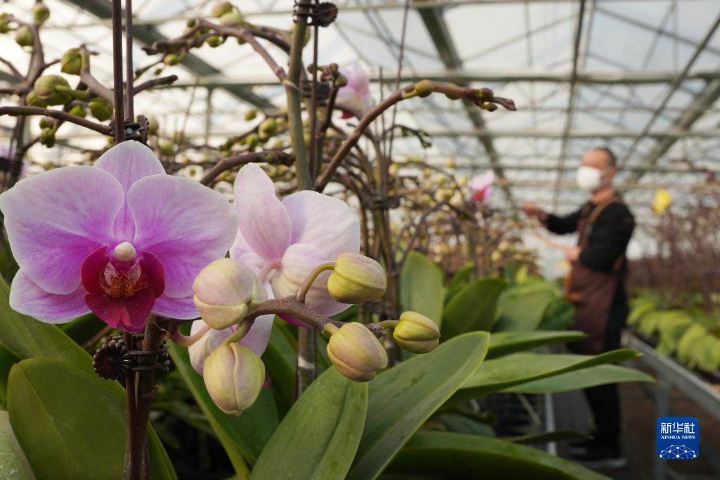 12月7日,河北省邢臺市內丘縣一處農業(yè)生態(tài)園的員工在溫室大棚里管護蝴蝶蘭。