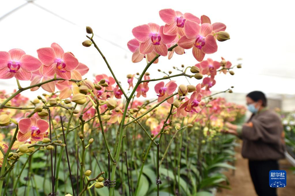 12月7日,河北省石家莊市元氏縣殷村鎮農民在溫室大棚里管護鮮花。