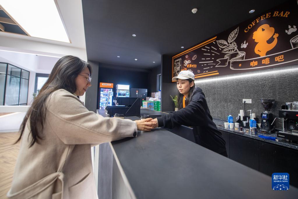 12月8日,顧客在大昌1885時(shí)尚數字產(chǎn)業(yè)園咖啡吧購買(mǎi)咖啡。
