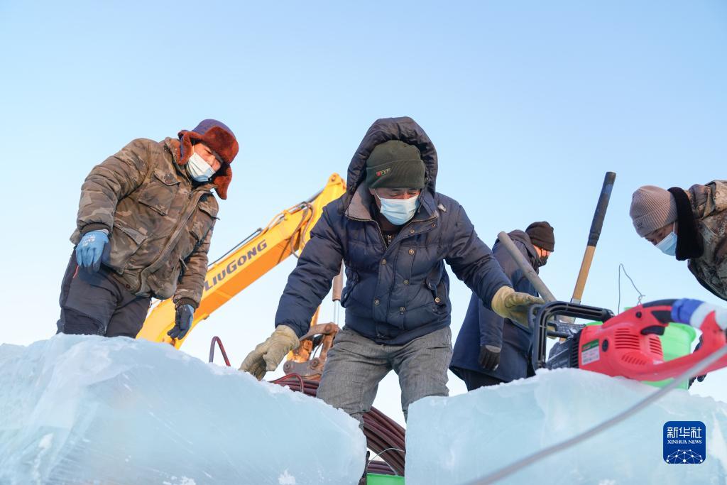 哈爾濱冰雪大世界冰建施工總體進(jìn)度過(guò)半