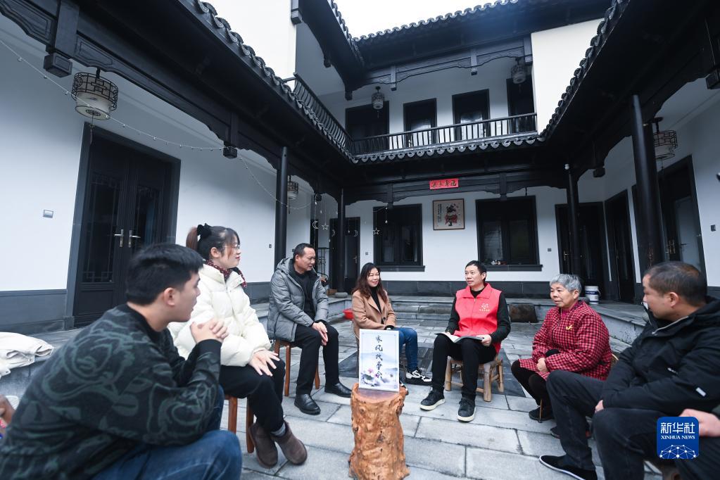 12月9日,在杭州市臨安區太陽(yáng)鎮上莊村,黨員志愿者和村民們一起參加家風(fēng)故事會(huì )。