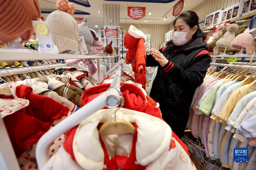 12月9日,顧客在山東省棗莊市一家超市選購兒童服裝。