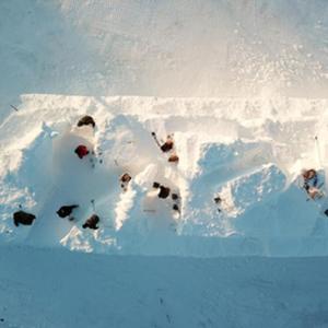 12月8日,雪雕師在哈爾濱太陽(yáng)島雪博會(huì )園區創(chuàng )作雪雕作品(無(wú)人機照片)。
