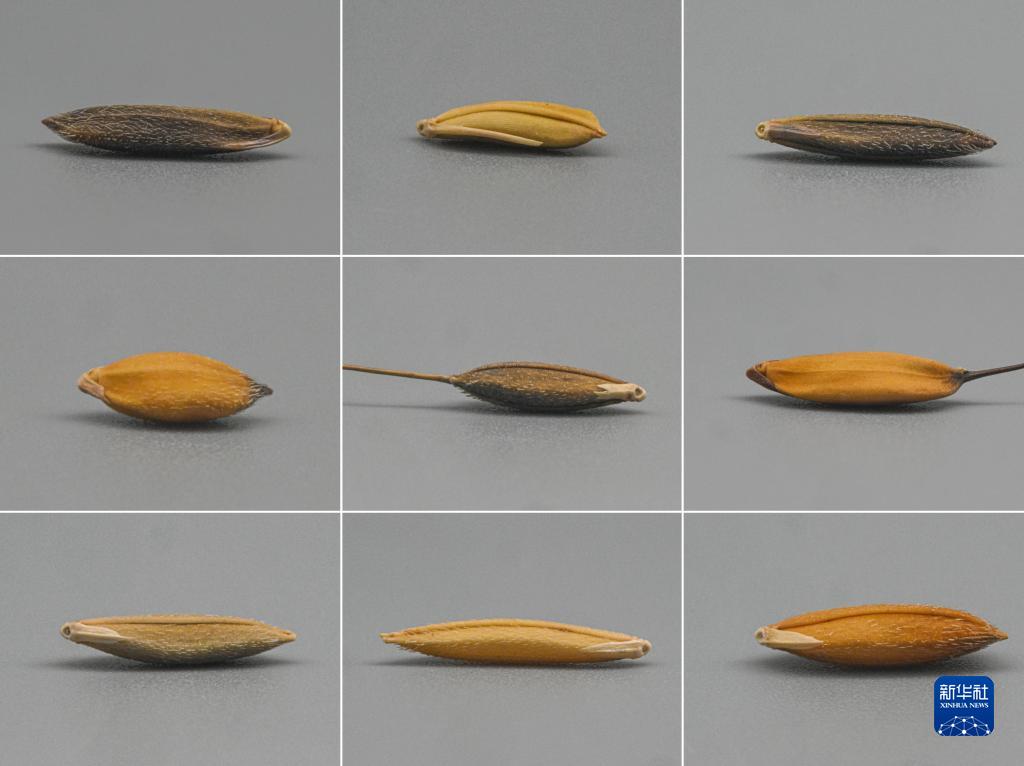 12月8日用微距鏡頭拍攝的賀治洲與團隊專(zhuān)家收集的部分稻種資源(拼版照片)。新華社記者 蒲曉旭 攝
