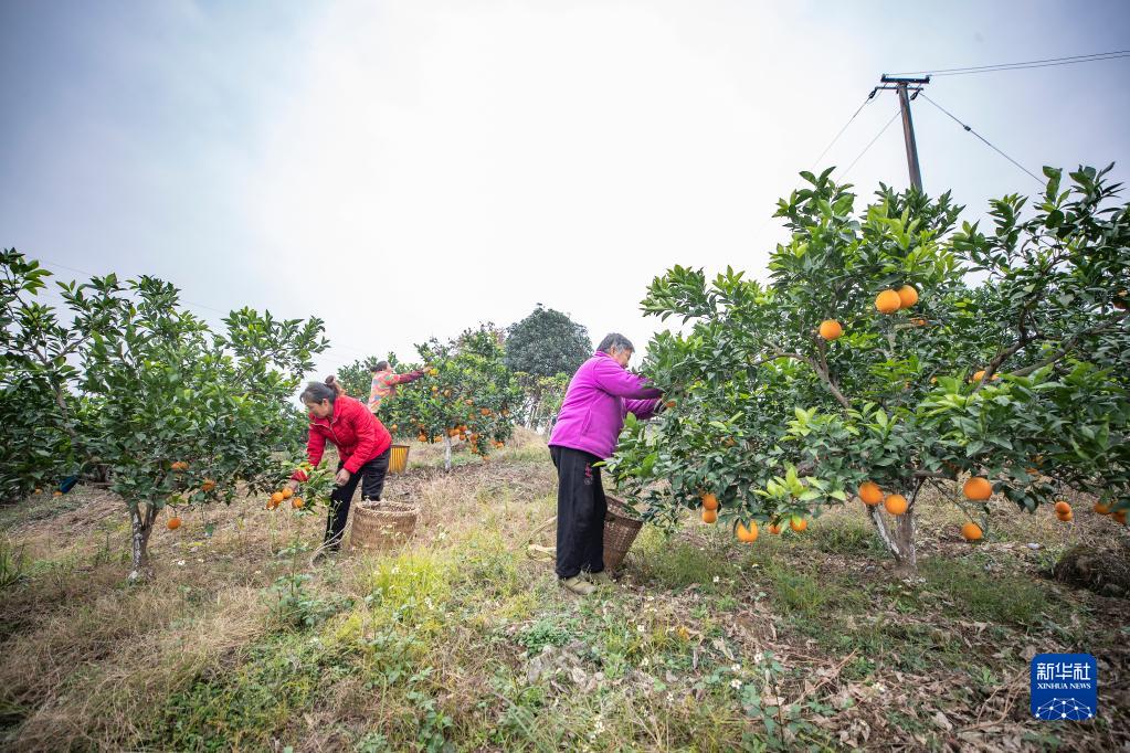 12月9日,在重慶市璧山區廣普鎮坪中村,村民在果園內采摘臍橙。
