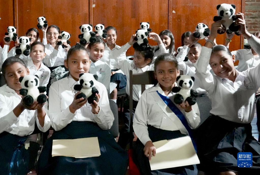 12月8日,在位于尼加拉瓜首都馬那瓜的國家劇院,參加慶祝中尼復交一周年專(zhuān)場(chǎng)音樂(lè )會(huì )的學(xué)生手捧熊貓玩偶。