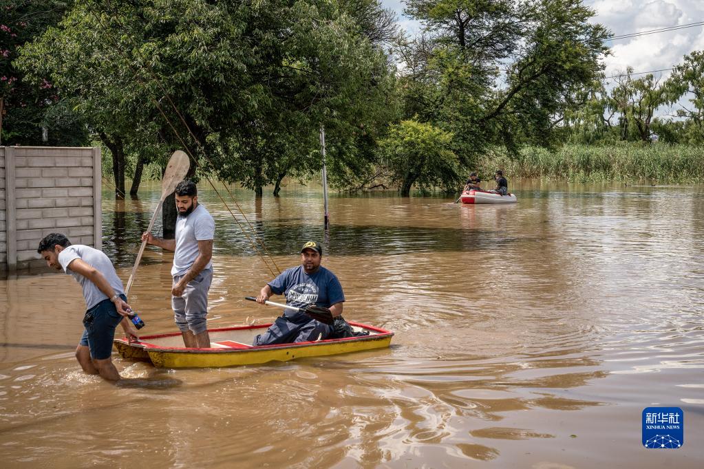 12月9日,在南非約翰內斯堡,受災居民乘船轉移。