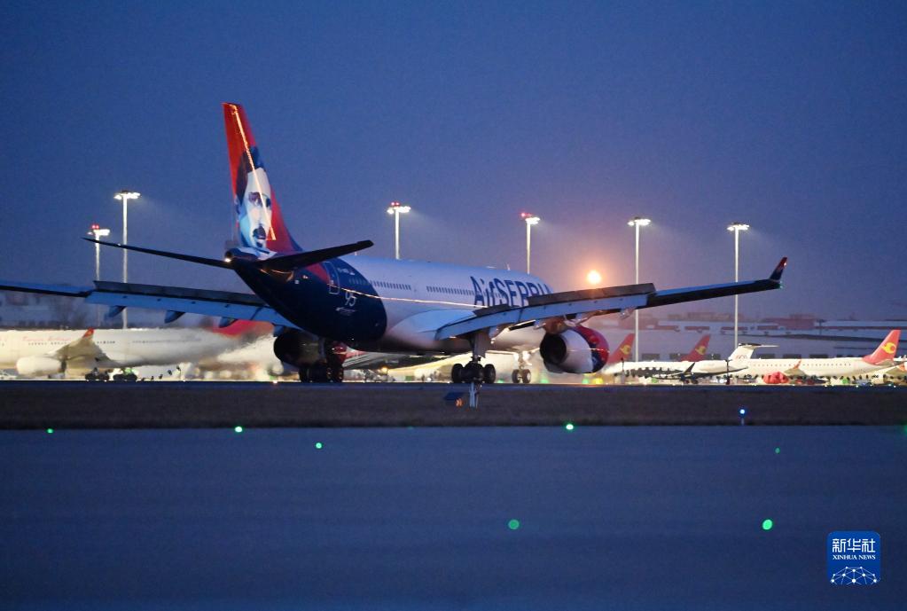當日,搭載約170名旅客的JU702航班在天津濱海國際機場(chǎng)順利落地,標志著(zhù)“貝爾格萊德-天津”直飛航線(xiàn)正式開(kāi)通。