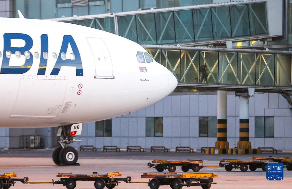 當日,搭載約170名旅客的JU702航班在天津濱海國際機場(chǎng)順利落地,標志著(zhù)“貝爾格萊德-天津”直飛航線(xiàn)正式開(kāi)通。