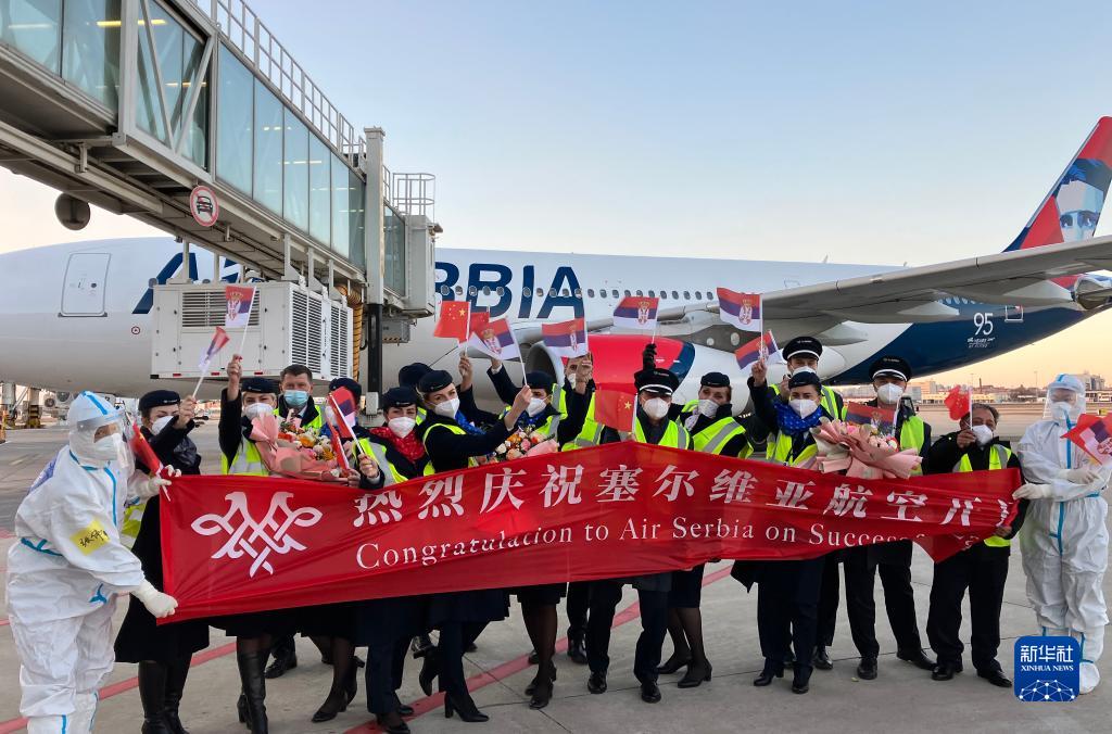當日,搭載約170名旅客的JU702航班在天津濱海國際機場(chǎng)順利落地,標志著(zhù)“貝爾格萊德-天津”直飛航線(xiàn)正式開(kāi)通。