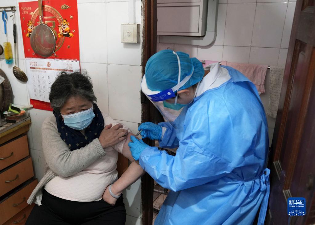接種小分隊的護士上門(mén)為出行不便的徐阿姨接種疫苗(12月5日攝)。