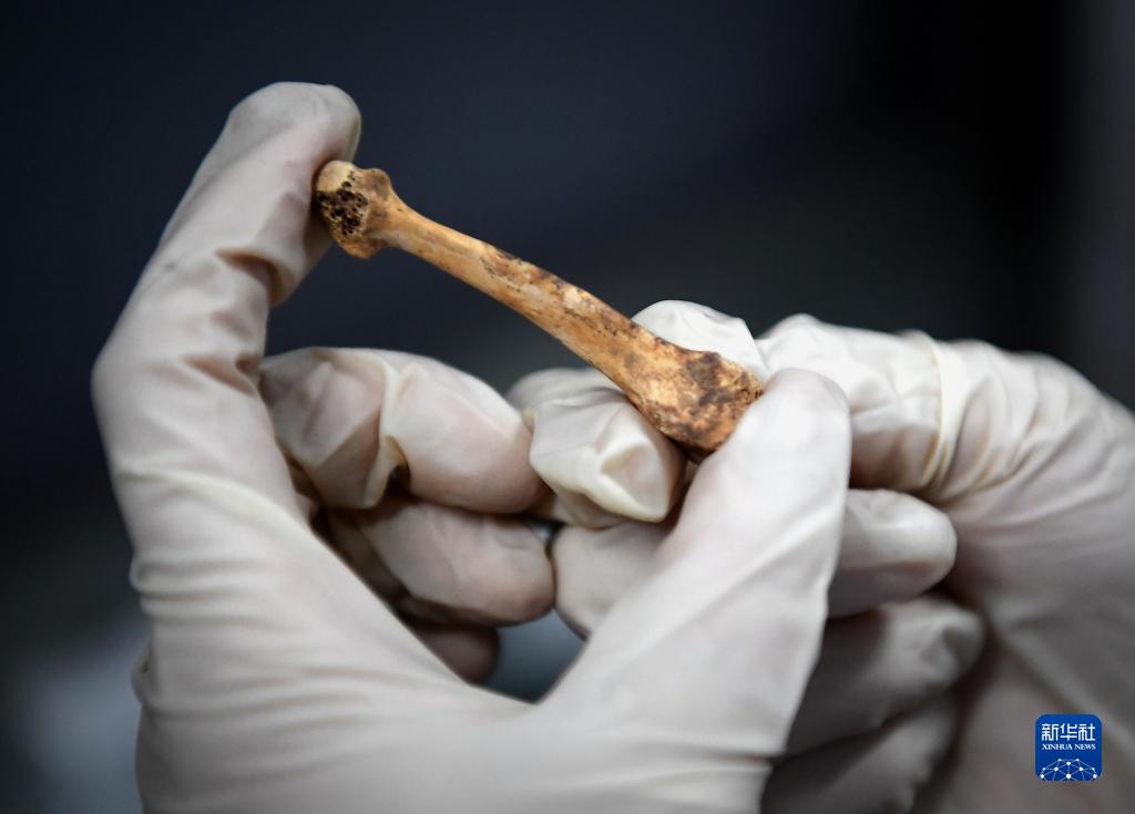 李彥楨在河南省文物考古研究院的標本庫內觀(guān)察纏足后的女性足骨(11月30日攝)。