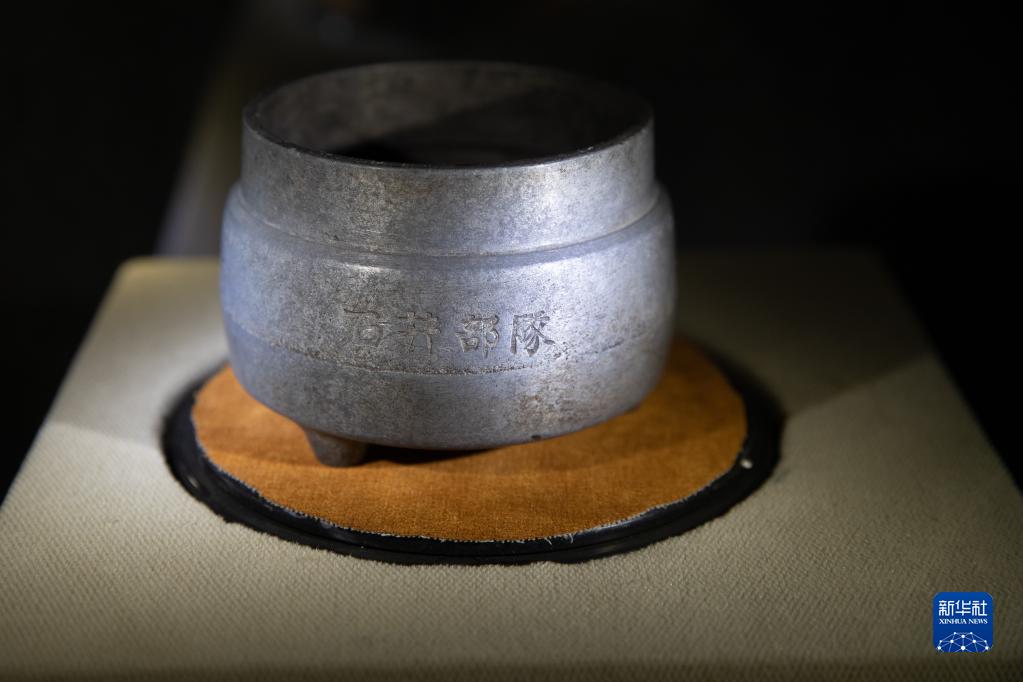 這是在侵華日軍第七三一部隊罪證陳列館內展陳的香爐(12月10日攝)。