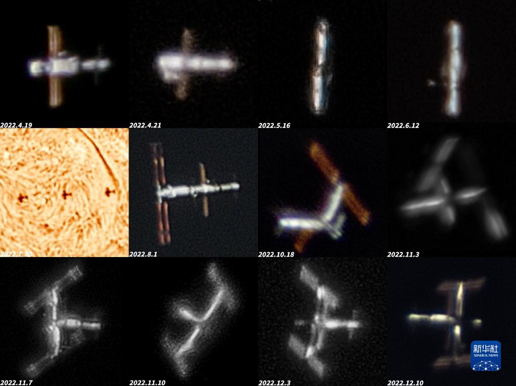 自2022年4月以來(lái)中國空間站建造階段的若干不同構型(拼版照片)。
