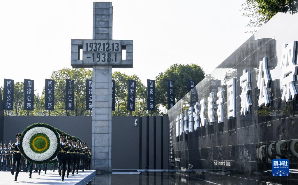 當日是第九個(gè)南京大屠殺死難者國家公祭日,南京大屠殺死難者國家公祭儀式在侵華日軍南京大屠殺遇難同胞紀念館舉行。