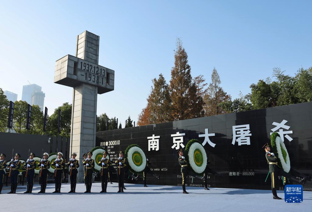 當日是第九個(gè)南京大屠殺死難者國家公祭日,南京大屠殺死難者國家公祭儀式在侵華日軍南京大屠殺遇難同胞紀念館舉行。