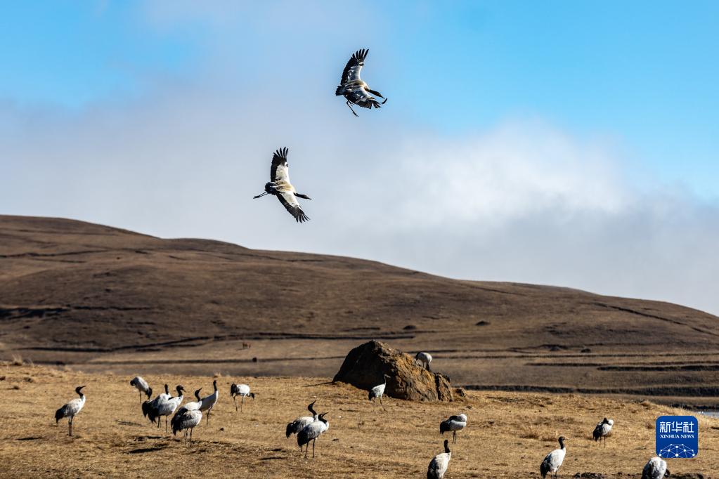 這是12月11日在云南大山包黑頸鶴國家級自然保護區內拍攝的黑頸鶴。
