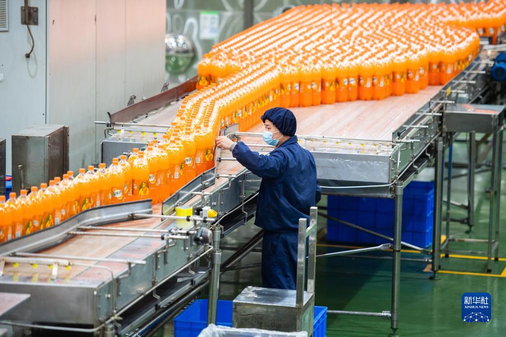 12月13日,在長(cháng)沙頂津食品有限公司飲品生產(chǎn)車(chē)間,工作人員在檢查飲料品質(zhì)。