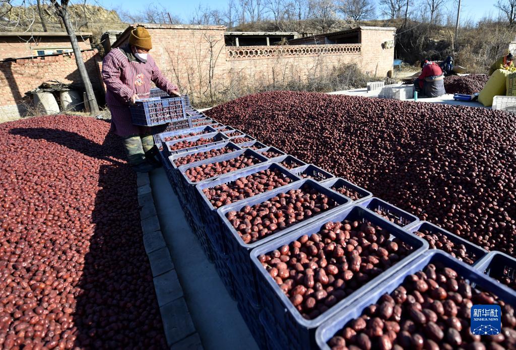 12月13日,河北省石家莊市行唐縣九口子鄉西玉女村的農民在搬運大棗。