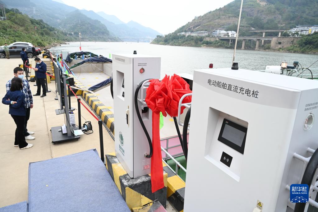 當日,福建“電動(dòng)閩江”首個(gè)電動(dòng)船舶直流充電示范場(chǎng)景在閩江水口壩區的海事碼頭正式啟用。它的投用將進(jìn)一步加快福建內河船舶綠色智能發(fā)展,提升閩江航運質(zhì)量效益。新華社記者 林善傳 攝