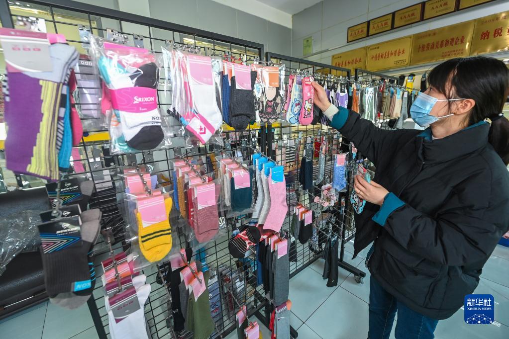 12月14日,在位于嘉興市南湖智能裝備制造產(chǎn)業(yè)生態(tài)園的嘉興云翔針織有限公司展廳內,工作人員在整理一批待出口襪子的樣品。該公司的負責人近期參加了包機赴日本參展活動(dòng),拿到了200多萬(wàn)美元的意向訂單。