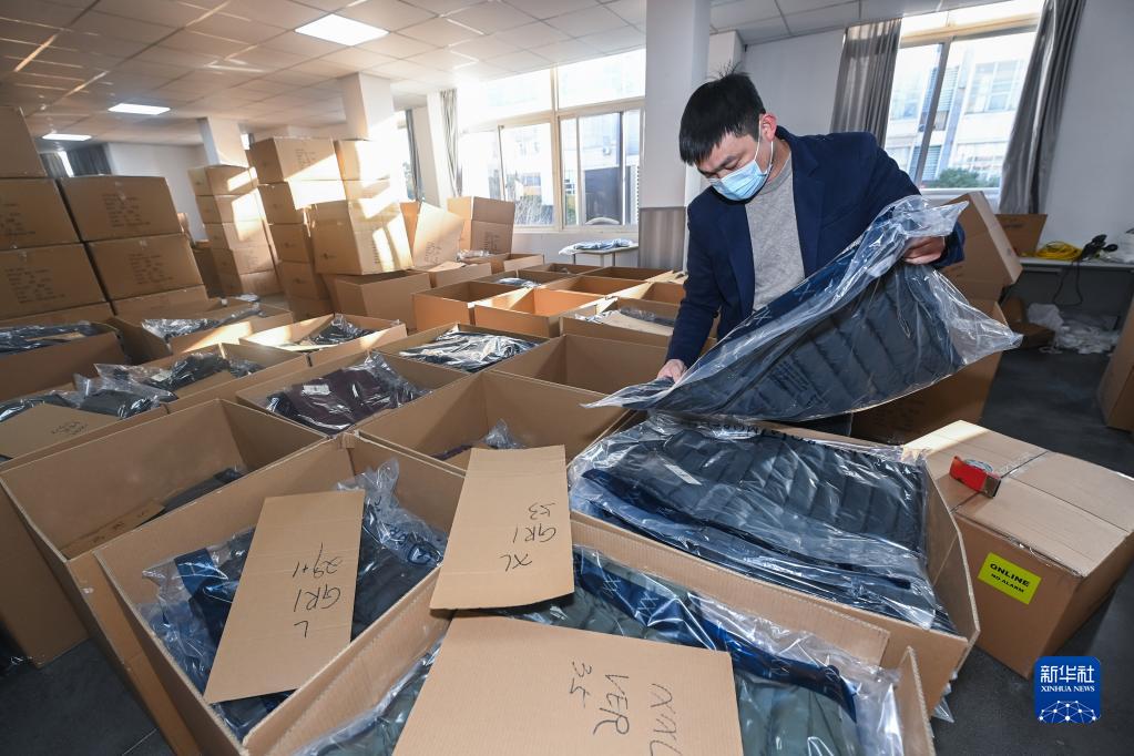 12月14日,在位于嘉興市南湖創(chuàng )業(yè)園的嘉興思凱服飾有限公司倉庫內,工作人員在打包一批外貿服裝。該公司是一家從事進(jìn)出口業(yè)務(wù)的服裝企業(yè),具有自營(yíng)出口權,產(chǎn)品出口范圍涉及歐盟、美國等多地,企業(yè)于近期隨團赴日本參加亞洲紡織成衣展,目前正在趕訂單、忙生產(chǎn)。