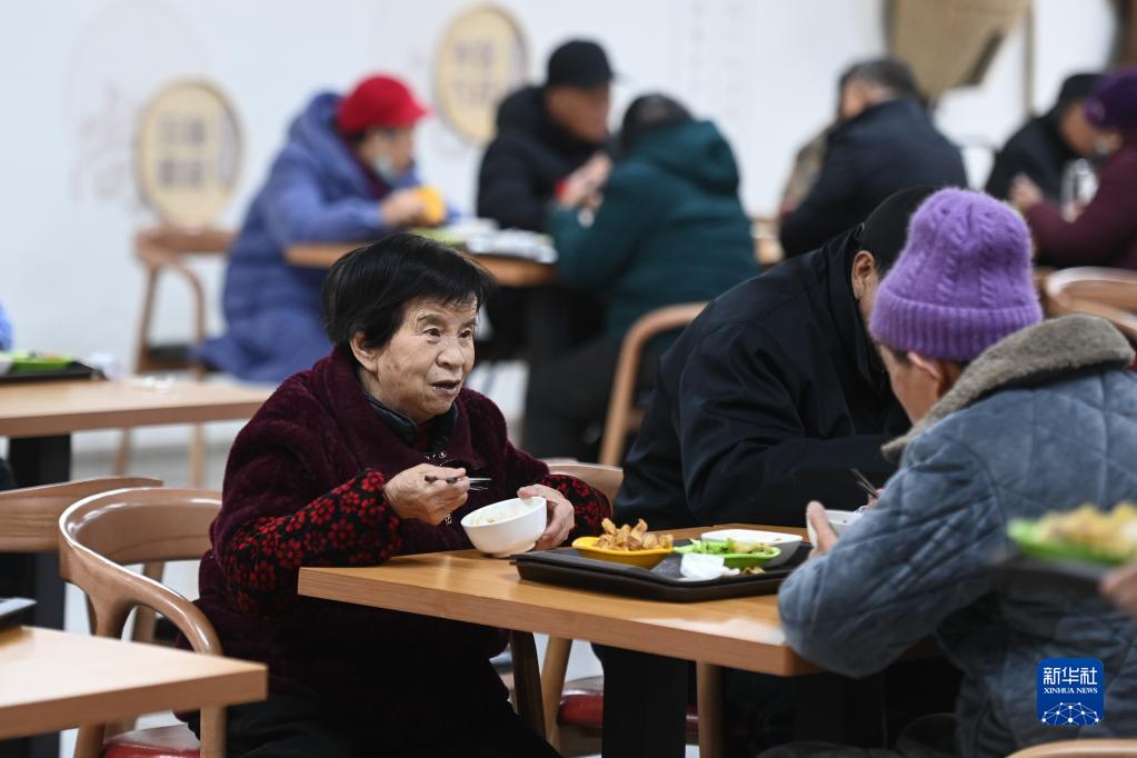 12月14日,杭州市臨安區錦城街道新民里社區的老人在“新民薈·小二食堂”用餐。