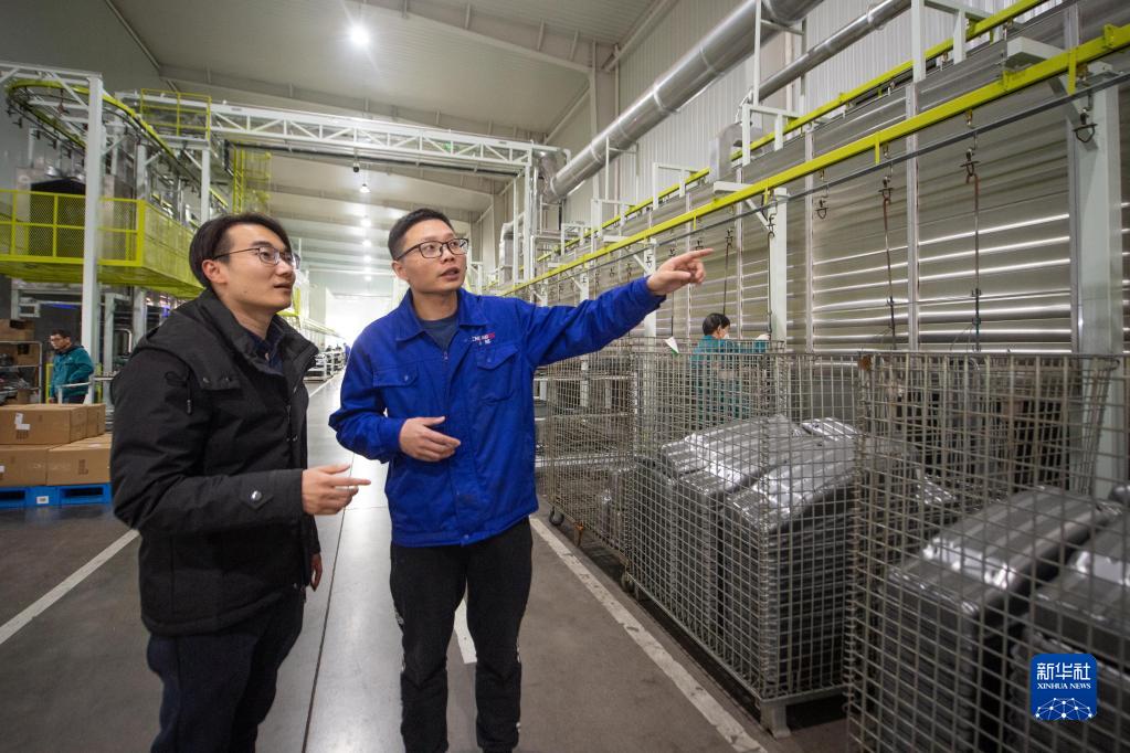 12月14日,陶朱街道駐企指導員(左)與浙江創(chuàng )格科技股份有限公司負責人在生產(chǎn)車(chē)間內交流企業(yè)生產(chǎn)經(jīng)營(yíng)情況。