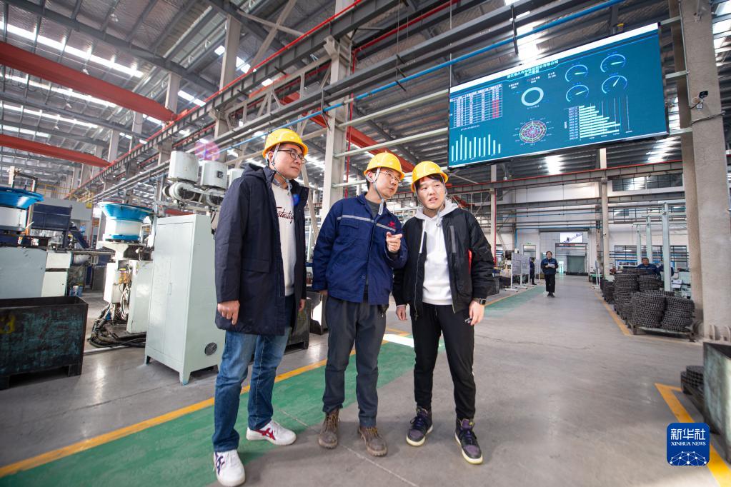 12月14日,浙江恒久傳動(dòng)科技股份有限公司負責人(中)在企業(yè)生產(chǎn)車(chē)間內與陶朱街道駐企指導員交流企業(yè)生產(chǎn)經(jīng)營(yíng)情況。
