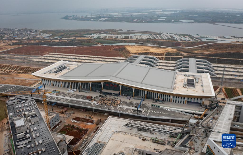 這是12月14日拍攝的彌蒙高鐵紅河站(無(wú)人機照片)。