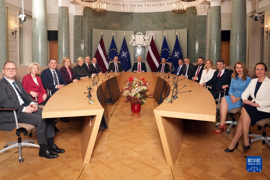12月14日,在拉脫維亞首都里加,拉總統萊維茨(左八)出席新一屆政府第一次會(huì )議。