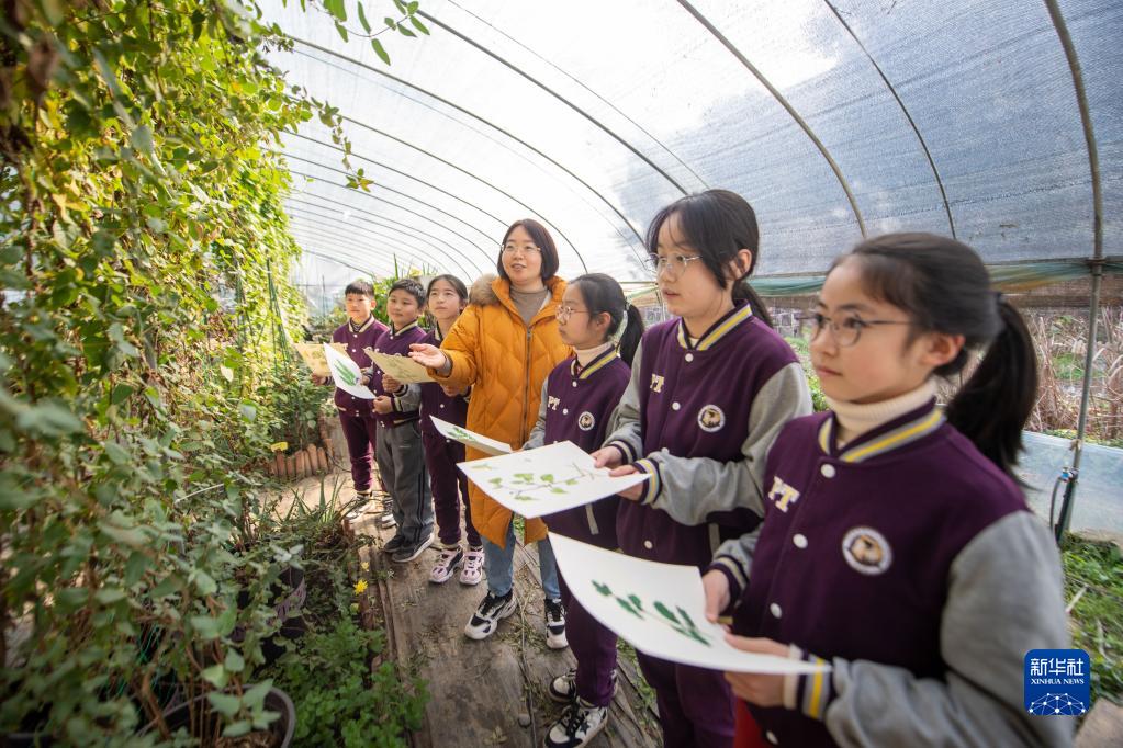 12月15日,諸暨牌頭鎮中心小學(xué)的老師帶領(lǐng)學(xué)生在校內勞動(dòng)教育基地內認識中草藥。