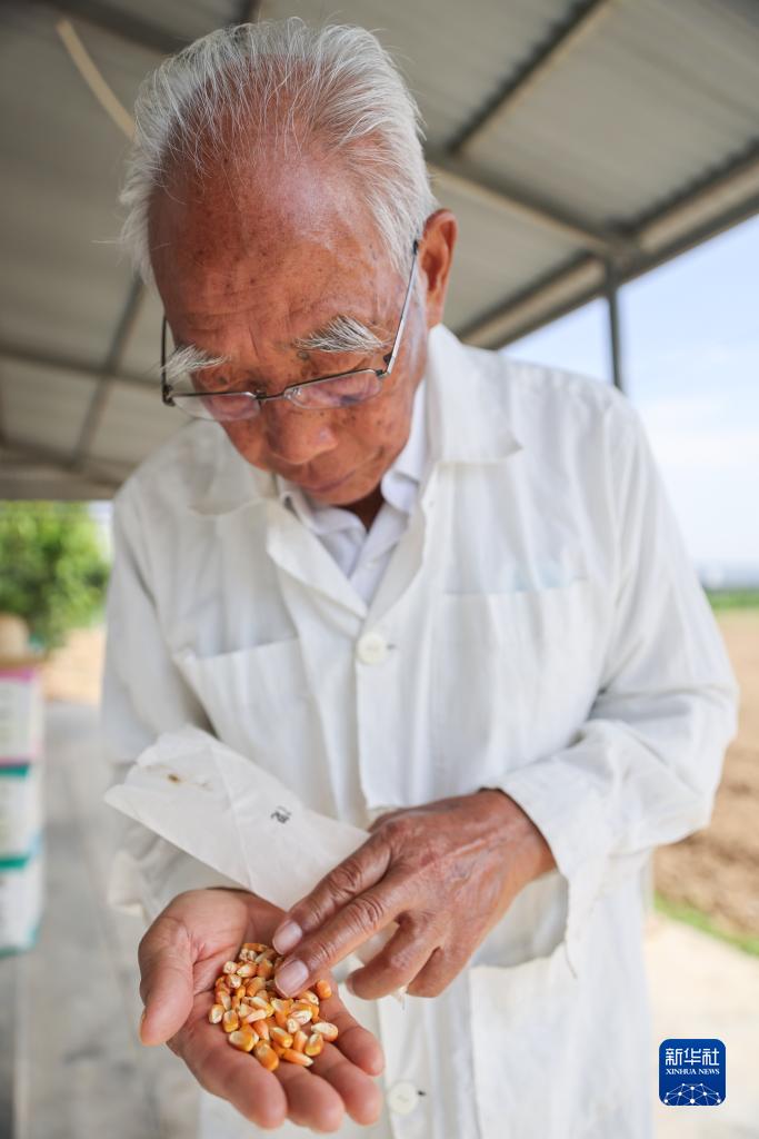 12月15日,玉米育種專(zhuān)家程相文在三亞南繁科研育種基地觀(guān)察玉米種子。