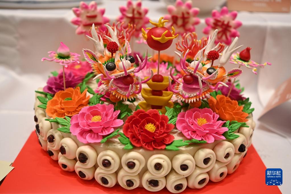 這是12月16日拍攝的2022中國非遺面食大會(huì )現場(chǎng)展示的花饃。