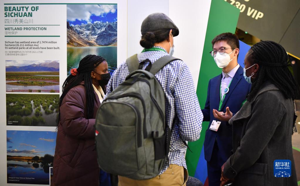 12月11日,與會(huì )者在加拿大蒙特利爾《生物多樣性公約》第十五次締約方大會(huì )(COP15)第二階段會(huì )議的中國角四川日活動(dòng)上了解生物多樣性保護成果。新華社記者 連漪 攝