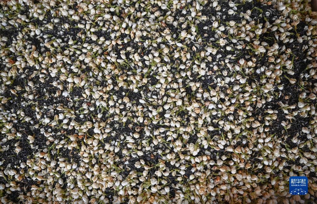 這是12月16日在福州茉莉花茶制茶工坊拍攝的靜置等待重復窨次的茉莉花茶。