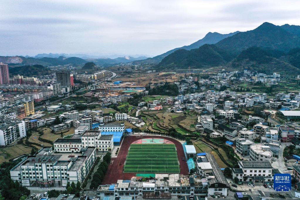 這是11月15日拍攝的貴州省丹寨縣城關(guān)第一小學(xué)校園足球場(chǎng)(無(wú)人機照片)。