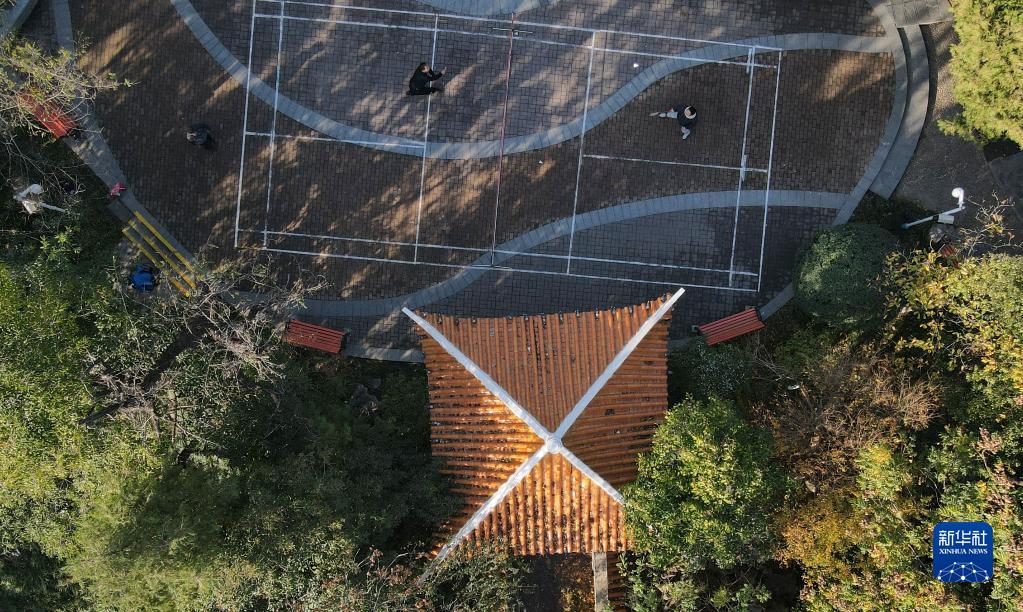 12月2日,市民在合肥市環(huán)城公園打羽毛球(無(wú)人機照片)。