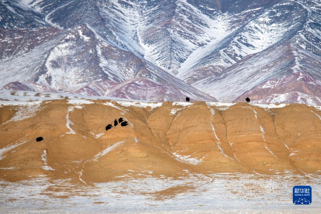 一場(chǎng)降雪過(guò)后,地處甘肅省酒泉市阿克塞哈薩克族自治縣境內的哈爾騰高原被皚皚白雪覆蓋,成群的藏野驢、野牦牛等野生動(dòng)物在高山雪地間戲雪覓食,為冬日的哈爾騰增添了不少生機與活力。