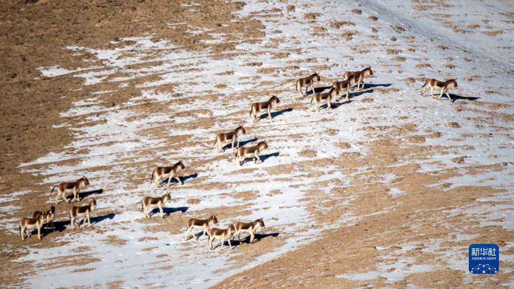 12月17日,藏野驢在哈爾騰高原上活動(dòng)覓食。