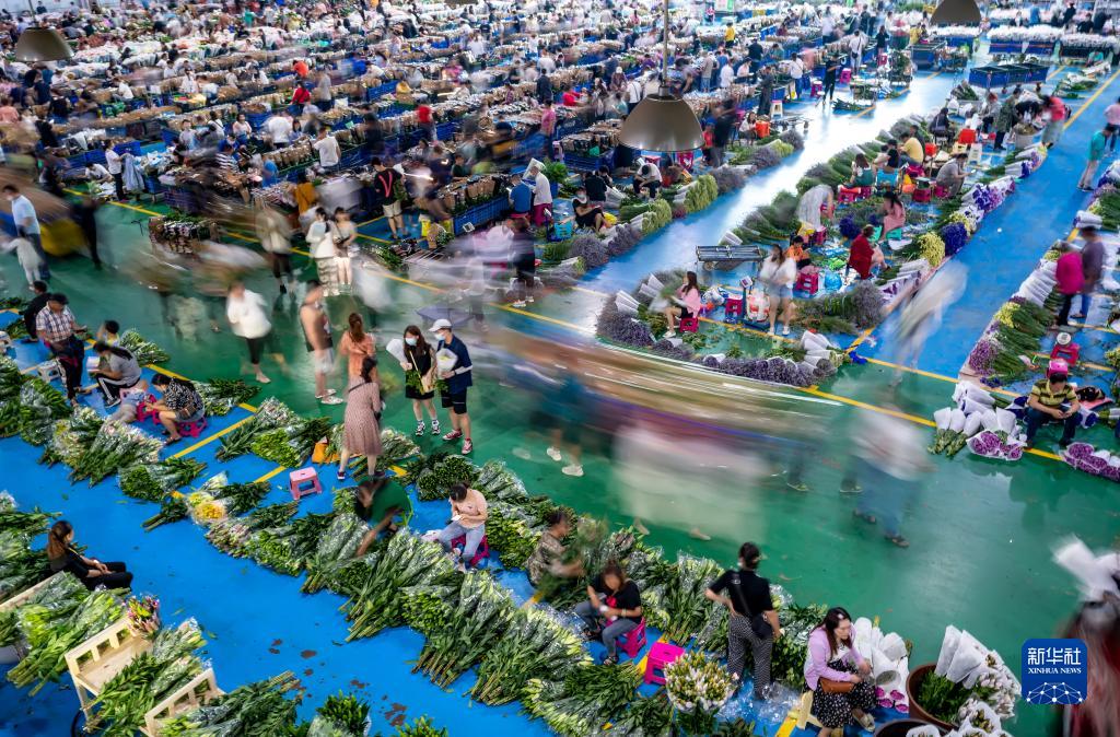 游客在夜間游覽云南昆明斗南花卉交易市場(chǎng)并選購鮮花(2022年7月12日攝)。昆明斗南被譽(yù)為“亞洲花都”,鮮花遠銷(xiāo)50多個(gè)國家和地區。近年來(lái),作為花卉交易及游覽景區的斗南花市根據夜間交易及人流量特點(diǎn),以花卉消費體驗、旅游體驗、文化體驗為特色大力發(fā)展“夜經(jīng)濟”。