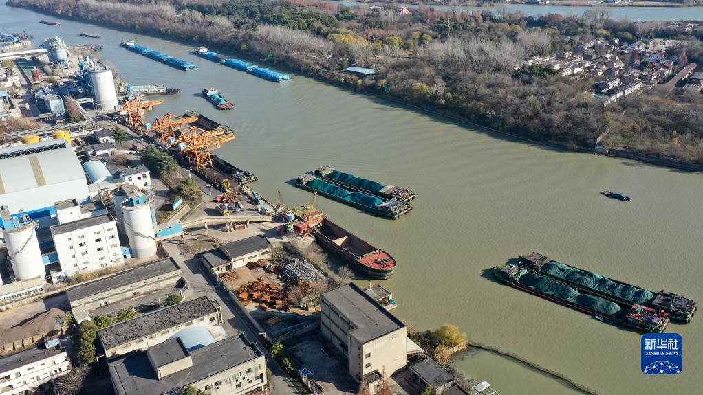 入冬以來(lái),在京杭大運河江蘇揚州段,裝載煤炭、鋼材、建材等貨物的船舶在航道上有序航行,來(lái)往如梭,運河上呈現一派繁忙景象。