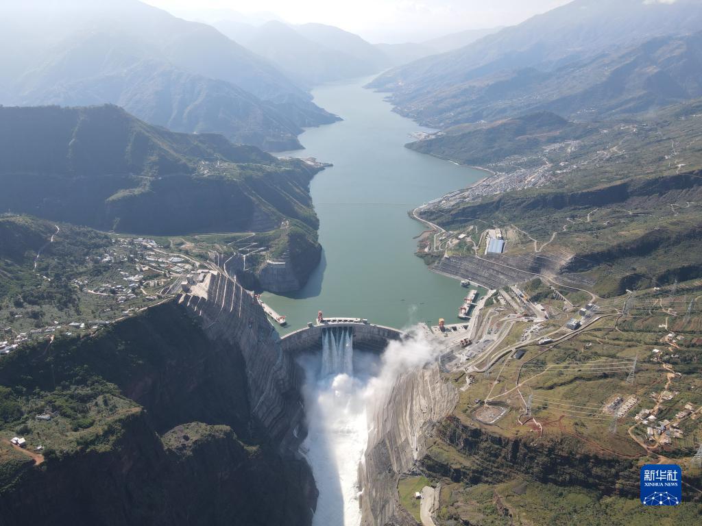10月29日,白鶴灘水電站蓄水至海拔825米后開(kāi)啟6個(gè)表孔做泄洪試驗。