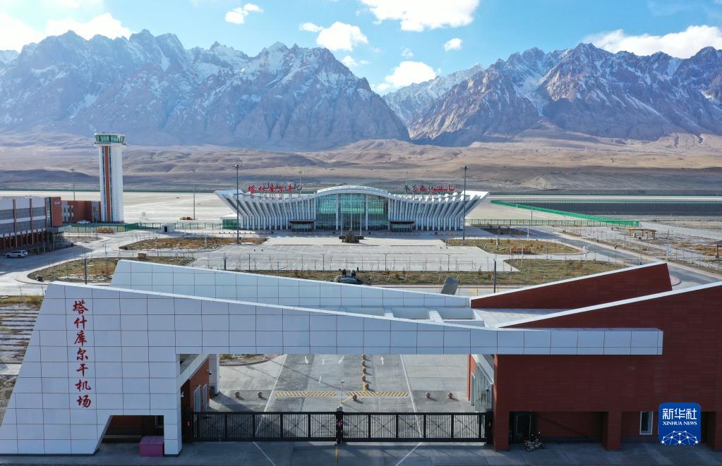 這是12月20日拍攝的塔什庫爾干紅其拉甫機場(chǎng)(無(wú)人機照片)。