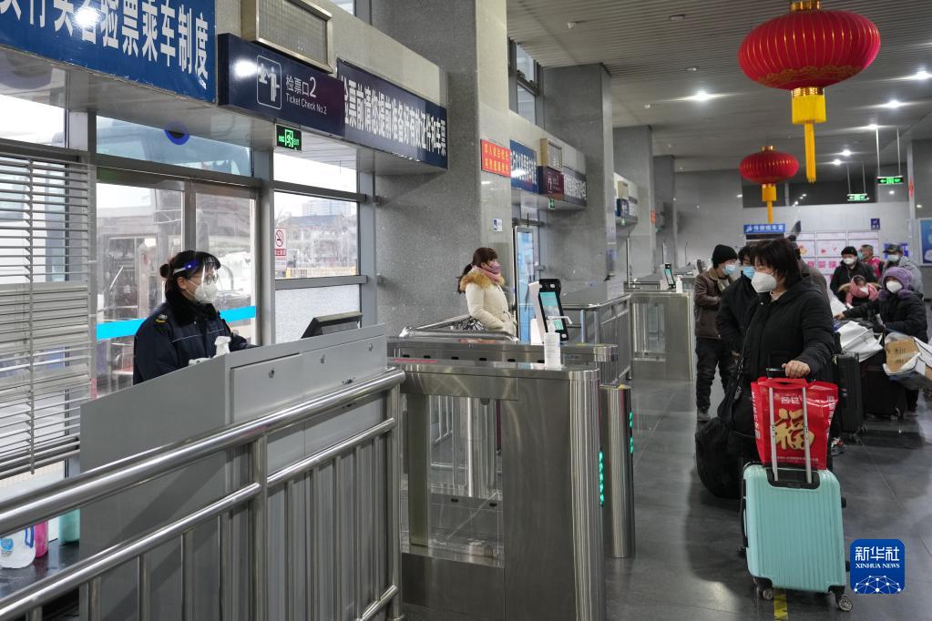 12月20日,在北京四惠長(cháng)途客運站,旅客在排隊等候檢票乘車(chē)。
