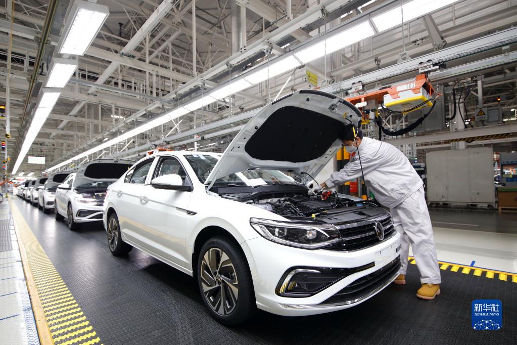 12月20日,在位于山東省青島市即墨區的一汽—大眾華東基地總裝車(chē)間,工人在裝配汽車(chē)。