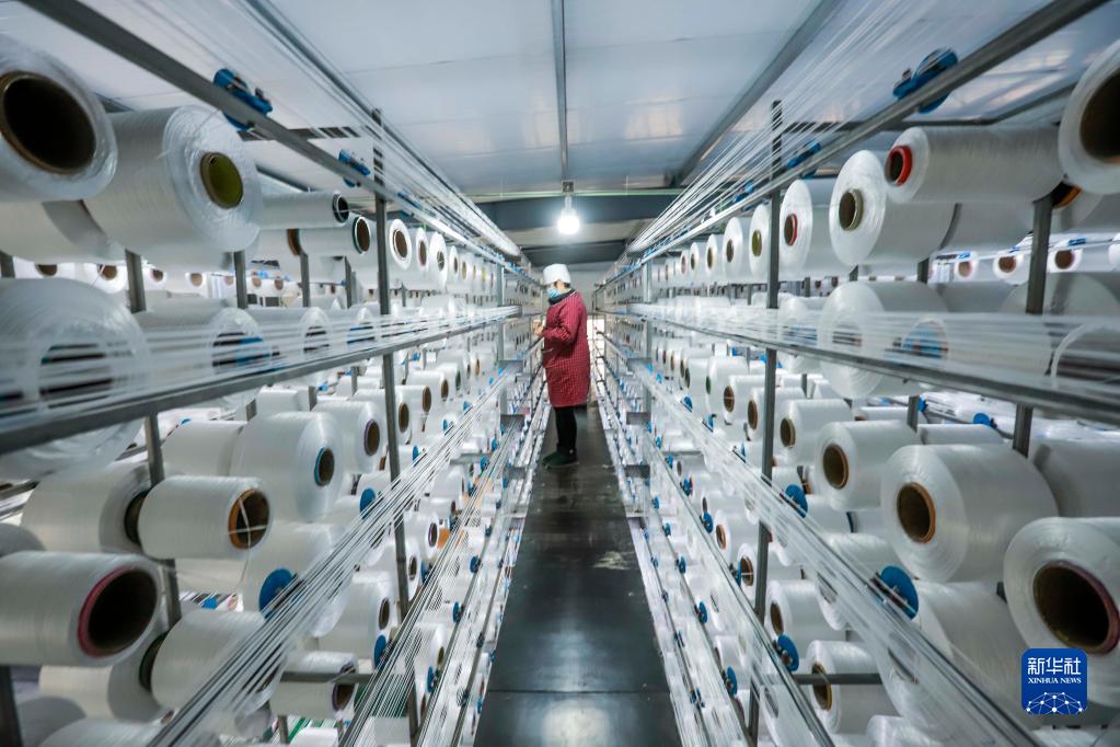 12月20日,工人在河北省遵化市一家化纖加工企業(yè)車(chē)間工作。