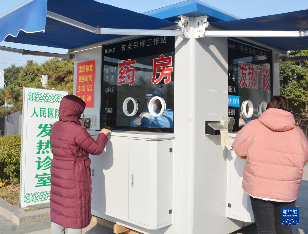 12月19日,在山東省棗莊市臺兒莊區興中廣場(chǎng),市民在一處發(fā)熱診室就診、取藥。