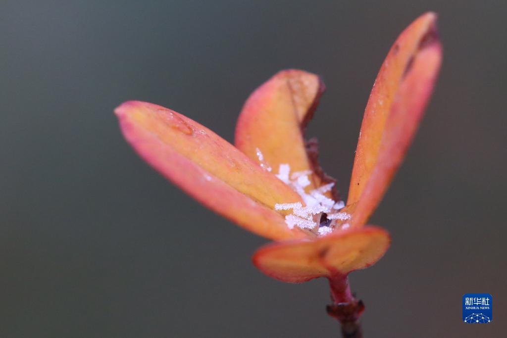 12月17日,在云南省曲靖市沾益區,雪落在植物上。