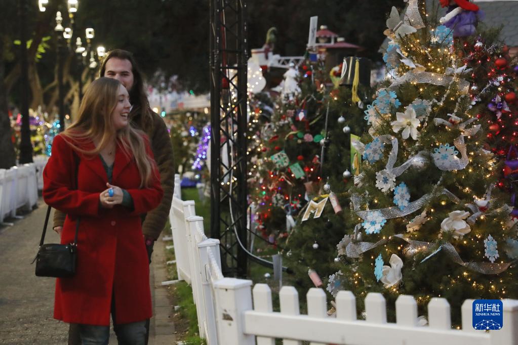 12月20日,在美國舊金山灣區圣何塞,人們觀(guān)賞圣誕主題裝飾。